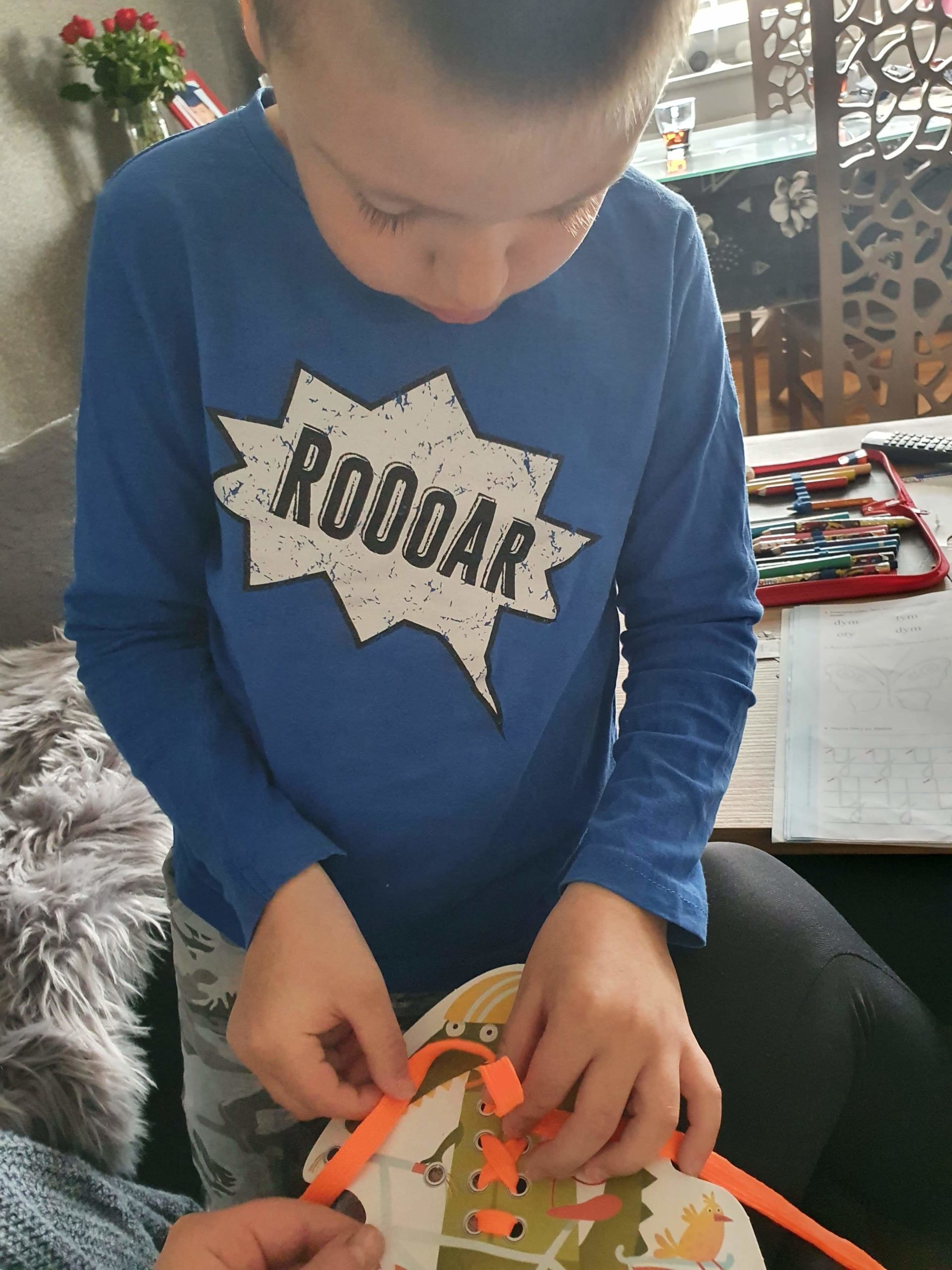 Ekoprzyjaciel, którego dzieci znalazły w swoich teczkach pomagał przypomnieć sobie lub poćwiczyć wiązanie sznurowadeł.