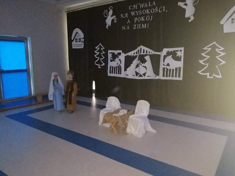 Święta Bożego Narodzenia to wyjątkowy i magiczny czas, pełen radości i rodzinnych spotkań. O tę świąteczną atmosferę w przedszkolu zadbały w tym roku dzieci z wszystkich grup, przygotowały od kilku tygodni „Jasełka bożonarodzeniowe”. Podczas występu przedszkolaki przedstawiły swoją opowieść o narodzinach Jezusa, oprawioną wieloma kolędami. Piękna scenografia nawiązująca do Betlejem oraz stroje przedszkolaków były idealnym dopełnieniem całego przedstawienia. Mali artyści z dużym przejęciem i zaangażowaniem wiernie odtwarzali swoje role, prezentowali umiejętności taneczne i wokalne. Wszystko to sprawiło, że w przedszkolu zapanował uroczysty i nastrojowy klimat.