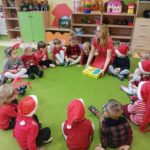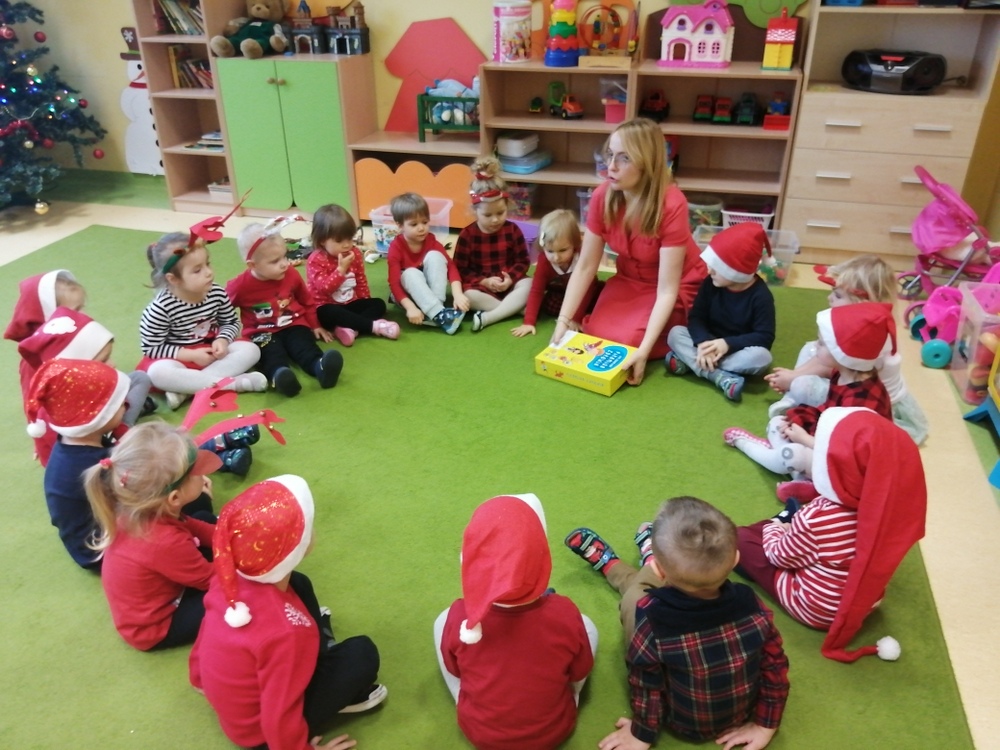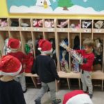 Nadszedł ten długo wyczekiwany moment, a mianowicie wizyta św. Mikołaja. Przedszkolaki wypatrując go w oknie doczekały się oczywiście. Biskup Mikołaj wręczył dzieciom prezenty dla grup i jeszcze dodatkowo na każde dziecko czekał prezent w szatni. Radości było co niemiara.