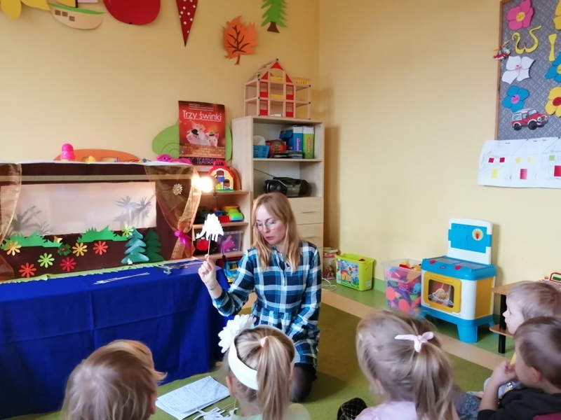 W grupie Badaczy na podstawie programu autorskiego „Edukacja artystyczna w wychowaniu przedszkolnym Mali odkrywcy – mali artyści” pani Sylwia tworzyła sama i wspólnie z dziećmi teatrzyki kukiełkowe, wykorzystując do nich kukiełki z tektury i balonów do bajek: „Trzy świnki” , „Kopciuszek” i „Czerwony Kapturek”. Dzieci mogły rozwijać swoją wyobraźnię i kreatywność, co wywołało wiele radości wśród przedszkolaków.