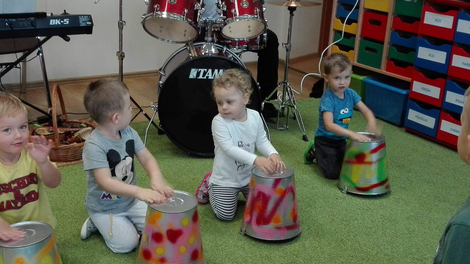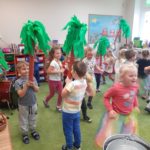 W miniony czwartek 14.11.br w naszym przedszkolu odbyły się kolejne warsztaty muzyczne. Dzieci tym razem bawiły się przy rytmach perkusji, a także same grały na nietypowych bębnach. Spotkanie było realizowane w ramach cyklu teatrzyków dla dzieci, które odbywają się w placówce w Pyszczynie i Zdziechowie. Finansowane są one z grantu pozyskanego z LGT Trakt Piastów przez Stowarzyszenie Rodzice – Przedszkolakom. W trakcie teatrzyku dzieci korzystały z artykułów papierniczych zakupionych również z grantu na kwotę 900 zł.