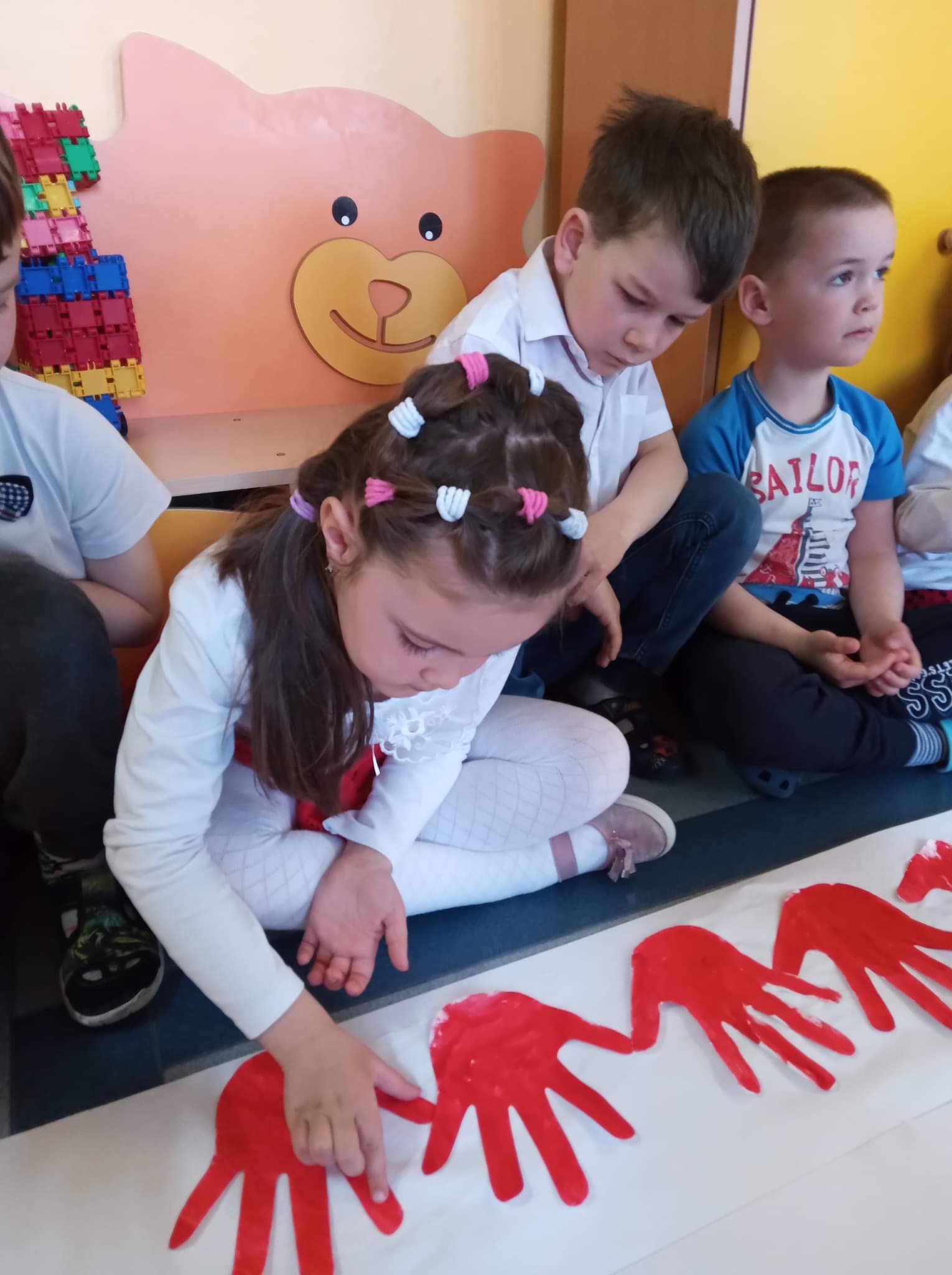 Święto Flagi 11 maja 2022Aktualności Obora Z okazji Święta Flagi dzieci przygotowały piękną biało- czerwoną flagę oraz zaprezentowały wiersz „Barwy Ojczyste”. Miłym akcentem tego dnia było sadzenie truskawek i poziomek w przedszkolnym ogródku.
