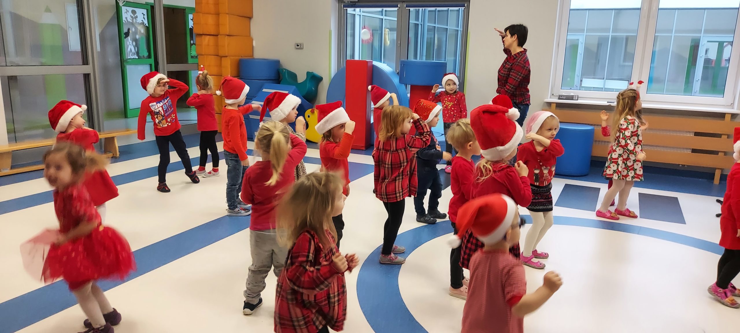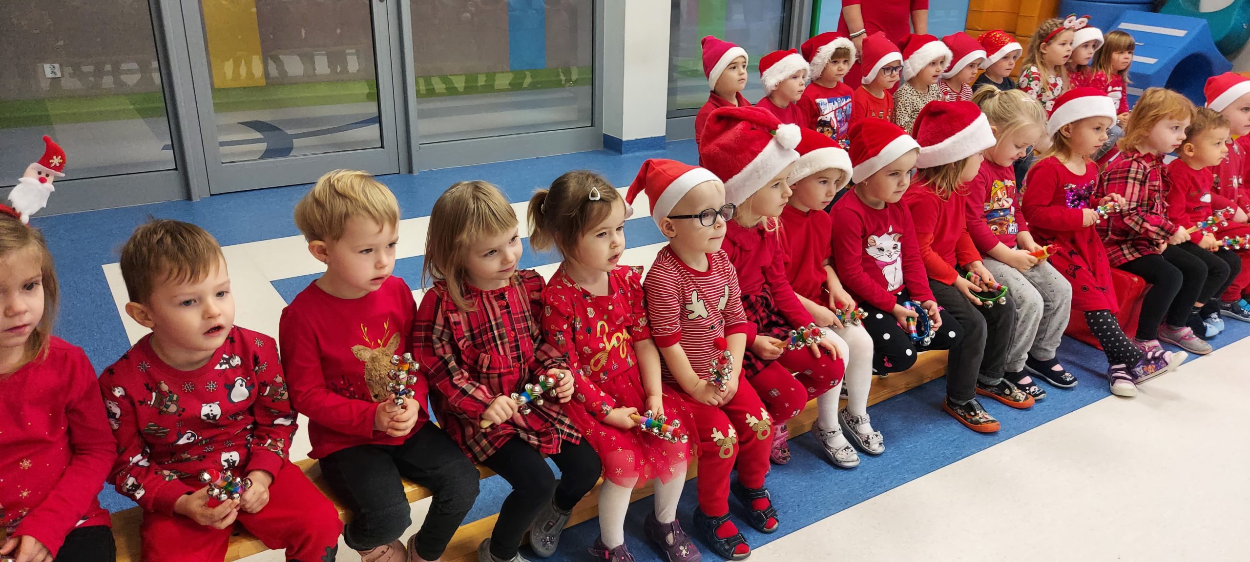 Okres świąteczny w naszym przedszkolu rozpoczęliśmy od Warsztatów Muzycznych realizowanych przez zespół BINGO. Dzieci przy akompaniamencie muzyki oraz pomocy elfa poznawały piosenki świąteczno – zimowe.Poznały różne instrumenty na których miały możliwość grać. Dzięki tym warsztatom w naszym przedszkolu rozeszła się aura świąteczna.