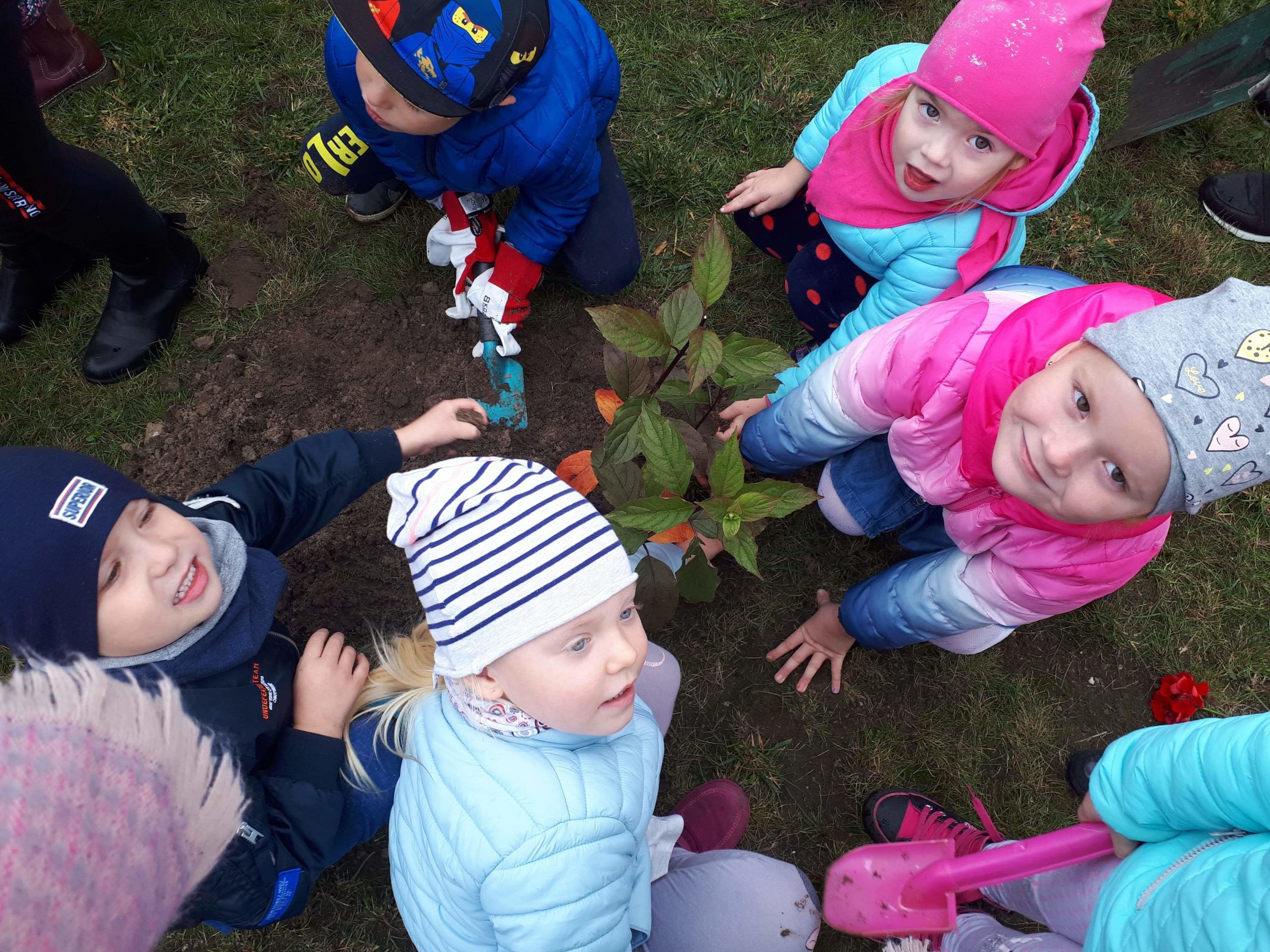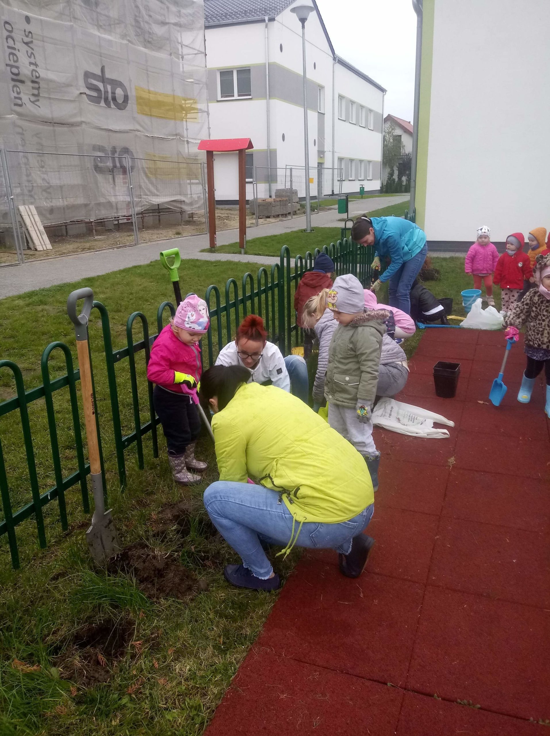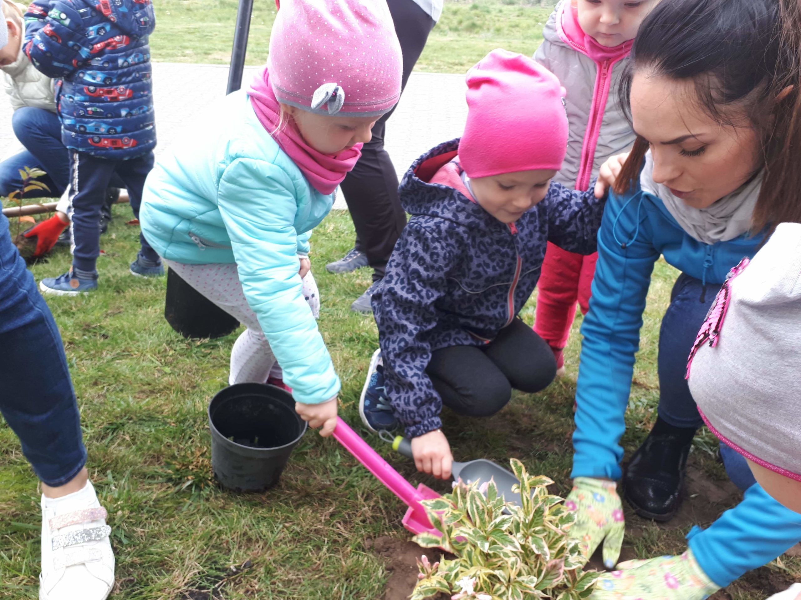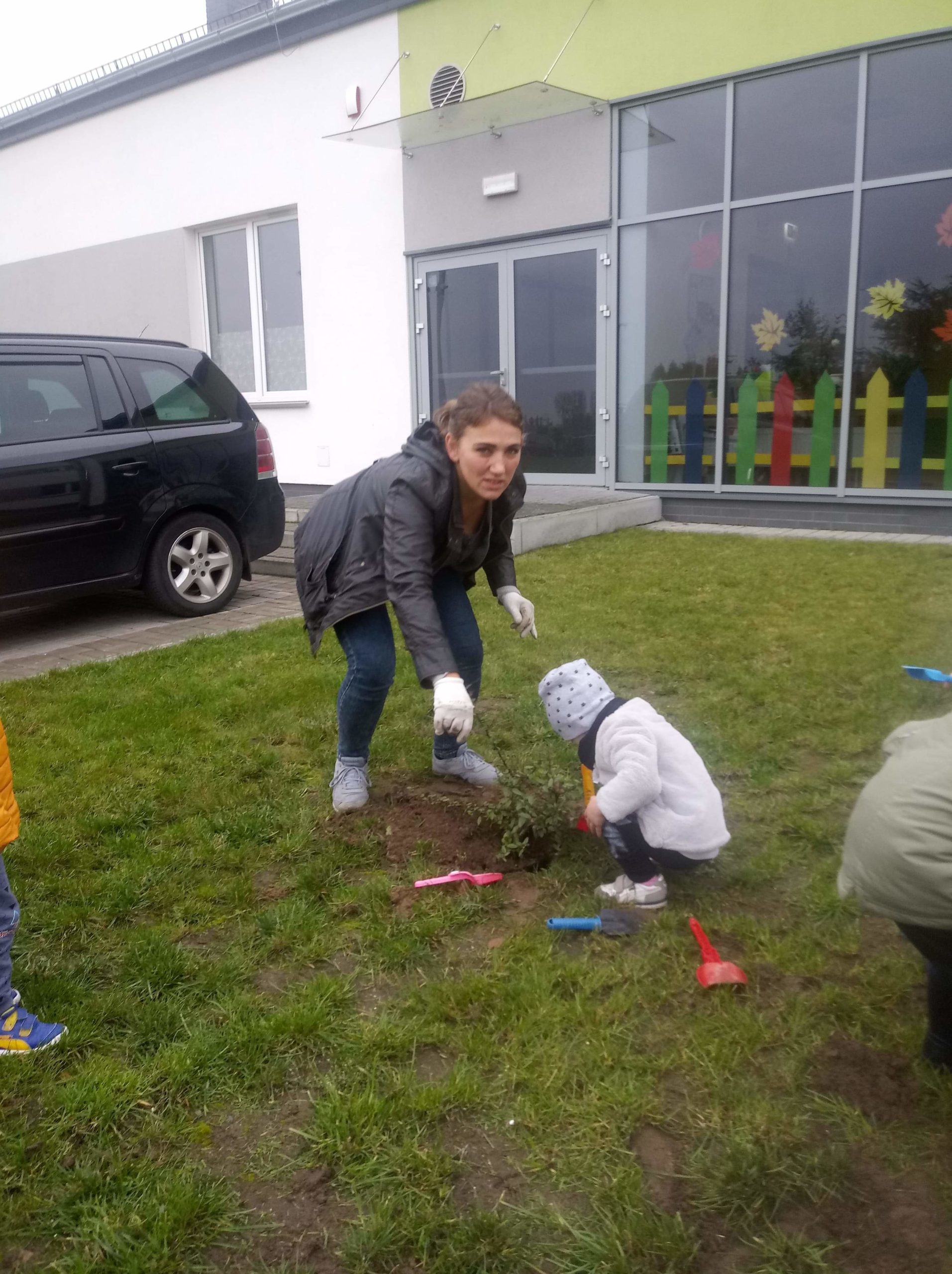 Wsadziliśmy sporo krzewów i kwiatów wokół przedszkola, które zostały zakupione przez stowarzyszenie – serdecznie dziękujemy.