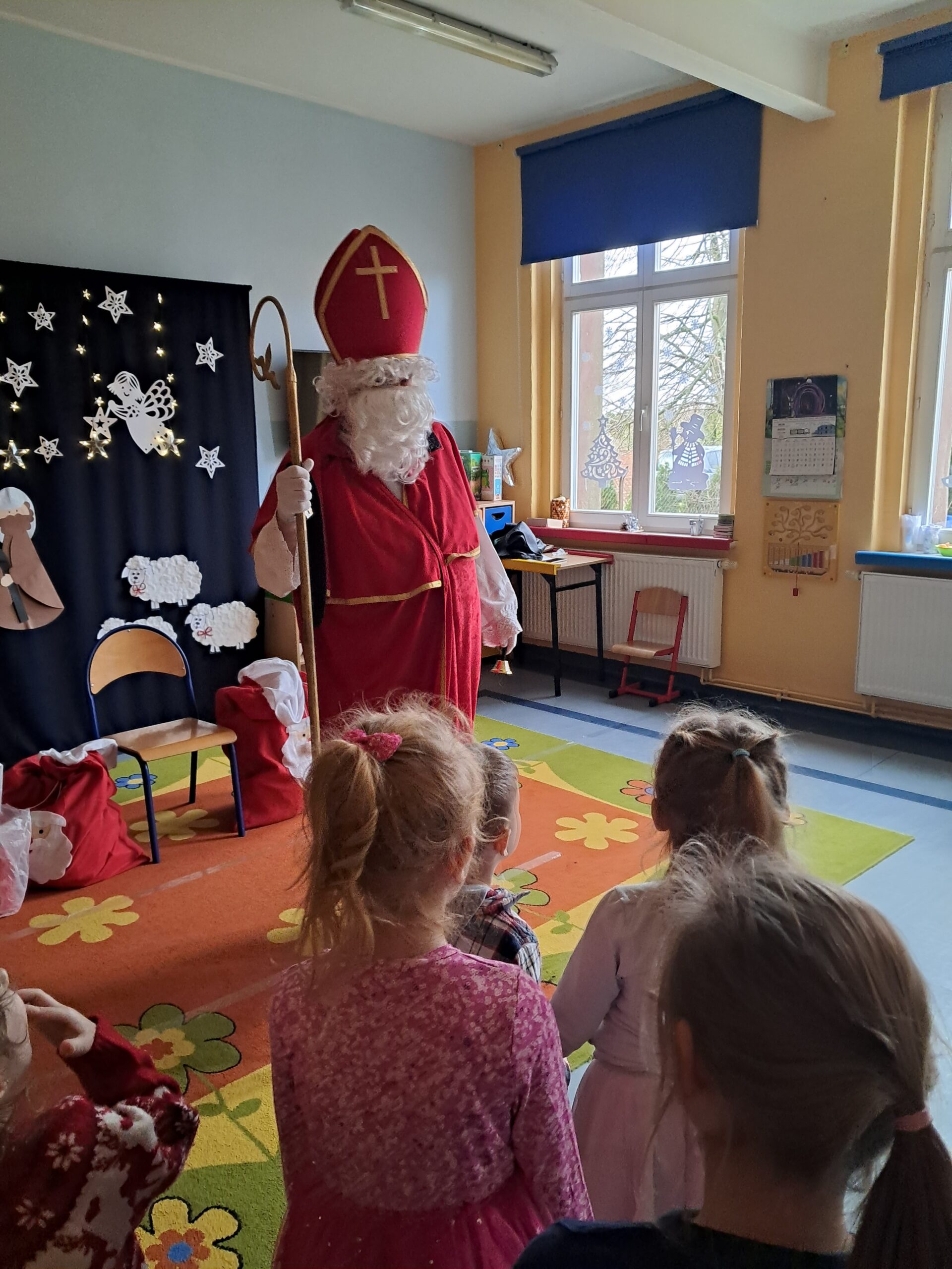 W piątkowy ranek 22.12.2023 nasze przedszkolaki oczekiwały na przyjście Gwiazdora i uroczysty obiad wigilijny. Po śniadaniu bawiliśmy się i poznawaliśmy tradycje wigilijne oraz sprawdzaliśmy naszą znajomość potraw. Śpiewając kolędy czekaliśmy na naszego gościa. Gdy tylko Gwiazdor, a właściwie św. Biskup Mikołaj pojawił się w drzwiach radości było co nie miara. Po odśpiewaniu piosenki dla naszego gościa, każde dziecko otrzymało wyczekiwany prezent. Gdy już wszyscy rozpakowali swoje prezenty, rozpoczęliśmy przygotowania do wigilijnego obiadu. Obiad wigilijny rozpoczęliśmy od zmówienia modlitwy i złożenia sobie życzeń, a następnie zabraliśmy się do kosztowania wigilijnych potraw m. in. barszczu, ryby i pierogów. Wesołych Świąt!