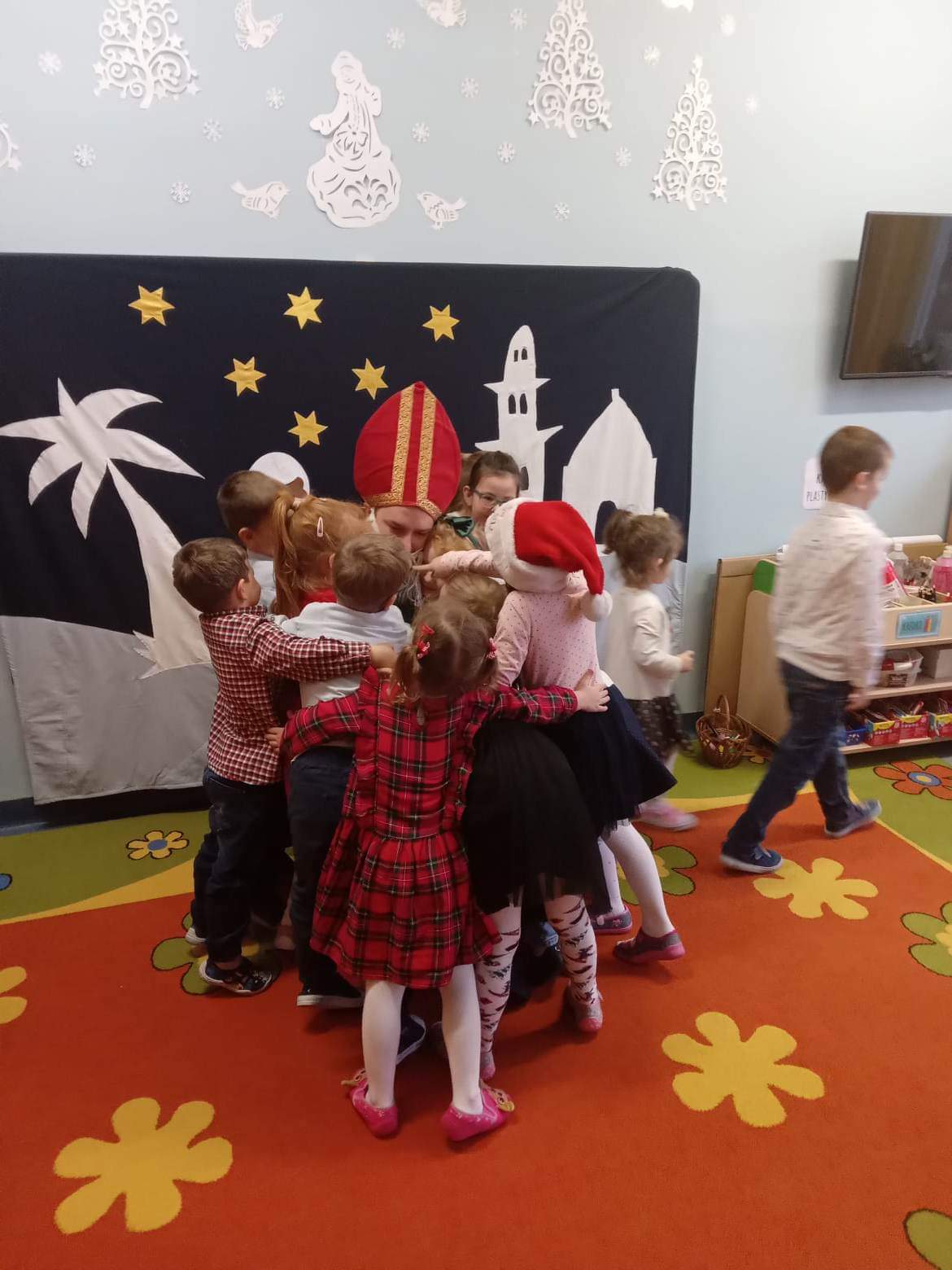 W środę, 21.12.2022 nasze przedszkolaki oczekiwały na przyjście Gwiazdora i uroczysty obiad wigilijny. Tego dnia, wszyscy byli ubrani bardzo elegancko. Po śniadaniu bawiliśmy się i poznawaliśmy tradycje wigilijne oraz sprawdzaliśmy naszą znajomość potraw wigilijnych. Śpiewając kolędy czekaliśmy na naszego gościa. Gdy tylko Gwiazdor, a właściwie św. Biskup Mikołaj pojawił się w drzwiach radości było co nie miara. Po odśpiewaniu piosenki dla naszego gościa, każde dziecko otrzymało wyczekiwany prezent. Żegnając biskupa piosenką wszystkie dzieci przytuliły św. Mikołaja zapraszając go do przedszkola w przyszłym roku. Gdy już wszyscy rozpakowali swoje prezenty, rozpoczęliśmy przygotowania do wigilijnego obiadu. Obiad wigilijny rozpoczęliśmy od złożenia sobie życzeń, a następnie zabraliśmy się do kosztowania wigilijnych potraw m. in. barszczu, ryby i pierogów. Wesołych Świąt!